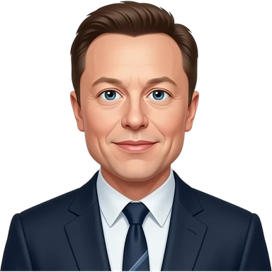 Elon Musk emoji, tech entrepreneur style, with a slight smirk, wearing a futuristic suit, hint of SpaceX or Tesla vibe, minimalistic and clean design, suitable for messaging apps emoji