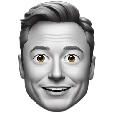 A highly detailed, photorealistic emoji-style illustration of just Elon Musk's head, no neck. The rendering should closely match his real facial features, skin and hair, with hyper realistic shading and lighting. Transparent background emoji