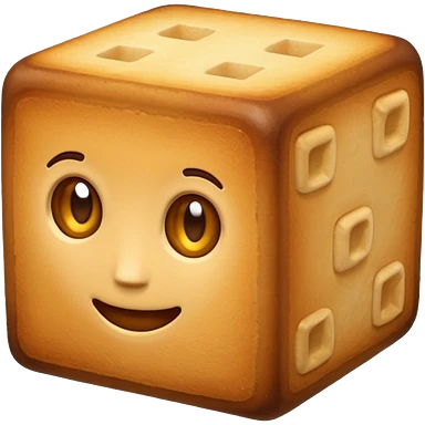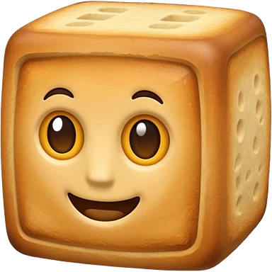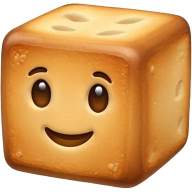 3 croutons, golden-brown, irregular, crispy, rough porous surface, hint of herbs, 3D, clean, soft shadows, transparent background, emoji scale emoji