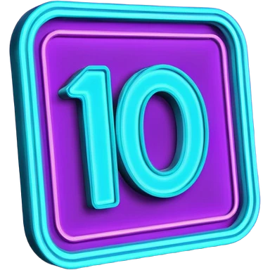 futuristic glowing neon “10/10” sign, purple and cyan glow, dark background emoji