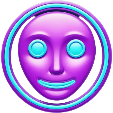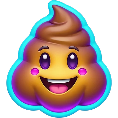 futuristic glowing poop emoji with funny smiling face, purple and cyan neon glow, dark background emoji