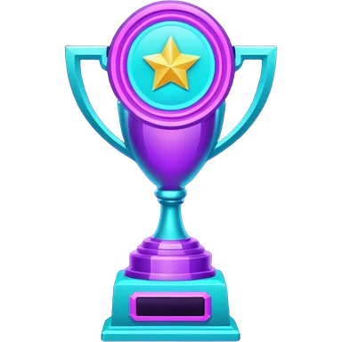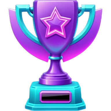 futuristic glowing neon trophy beside, purple and cyan glow, dark background emoji
