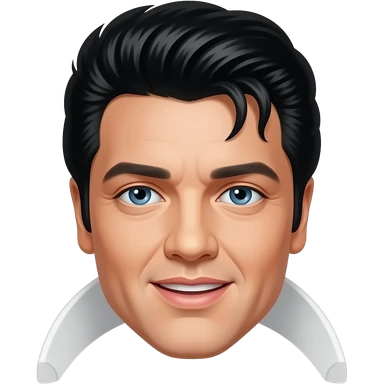 Elvis Presley with blue eyes, black hair, white metallic shirt, silver necklace emoji