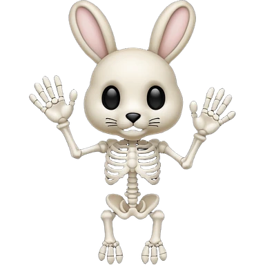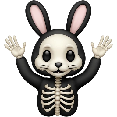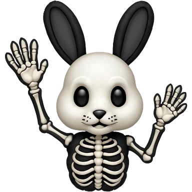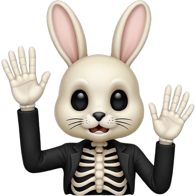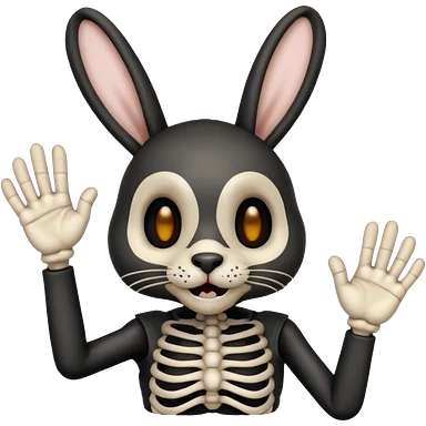 Emoji tete de Lapin squelette noire qui fait bonjour de la main emoji