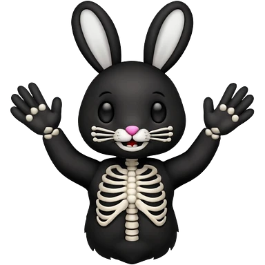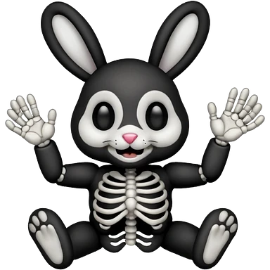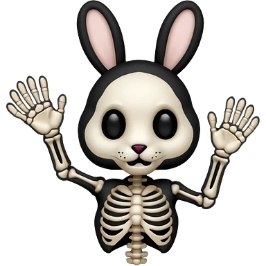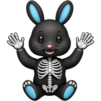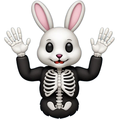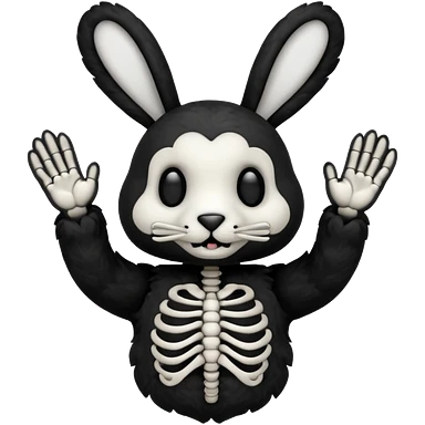Emoji tête de peluche Lapin squelette noire qui fait bonjour de la main emoji