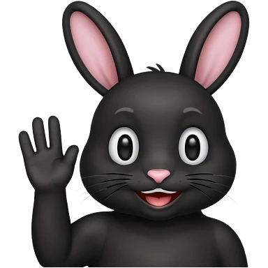 emoji d'une tête de lapin noire qui dit bonjour de la main emoji
