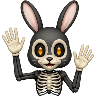 Emoji tête de Lapin squelette noire qui fait bonjour de la main emoji