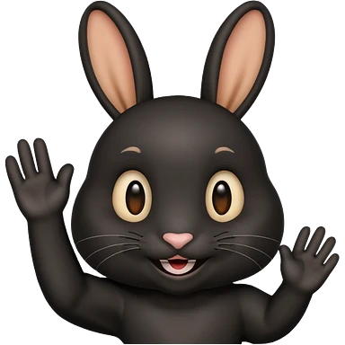 Emoji tete de Lapin noire qui fait bonjour de la main emoji