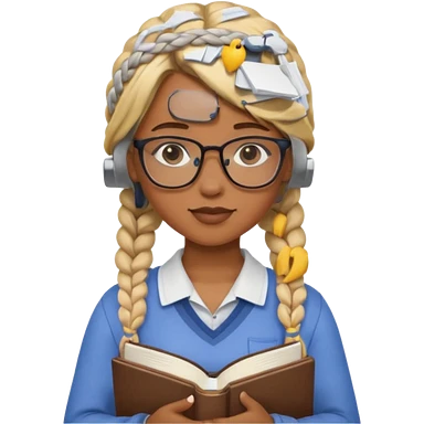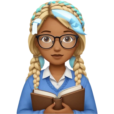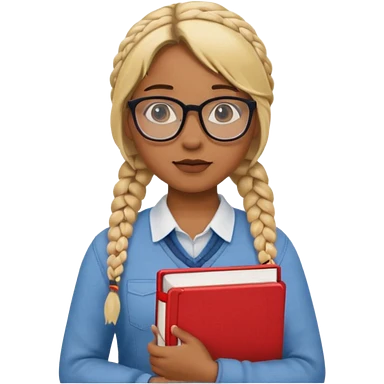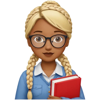 A student, girl, brown skin, braid blonde hair, wearing glasses, hold book in front of their chest emoji