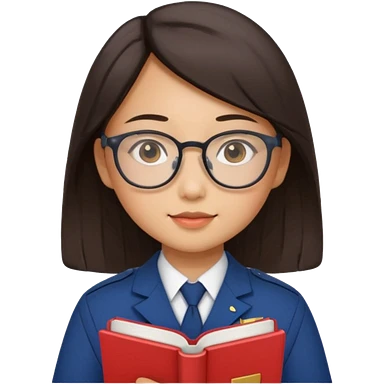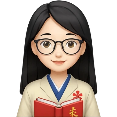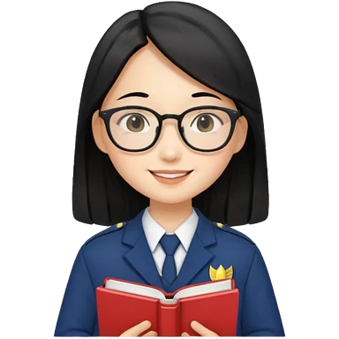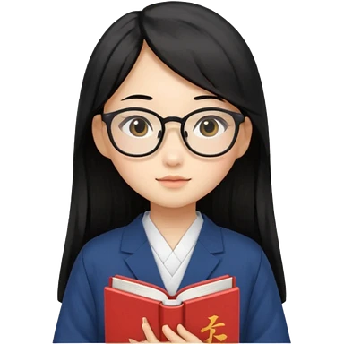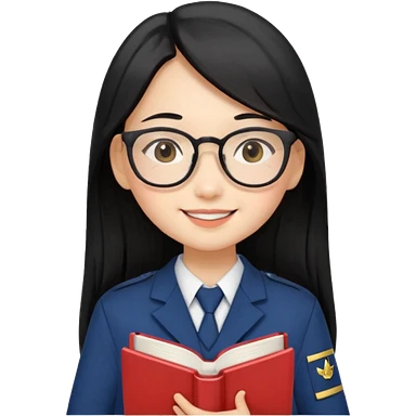 A student, asian girl, long black hair, wearing glasses, uniform, hold book in front of their chest emoji