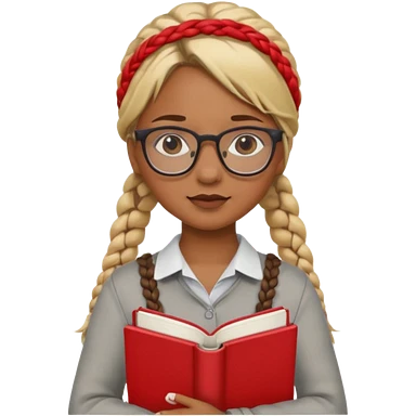 A student, girl, brown skin, braid blonde hair, wearing glasses, hold red book in front of their chest emoji
