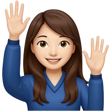 An Asian woman with long brown hair waving her hands emoji