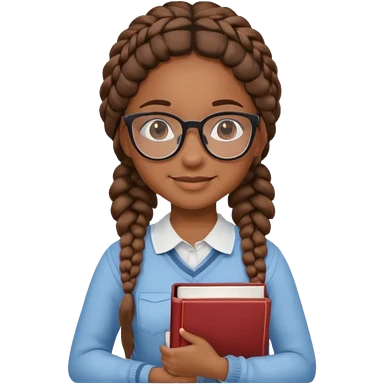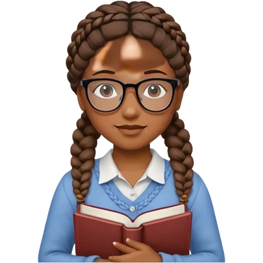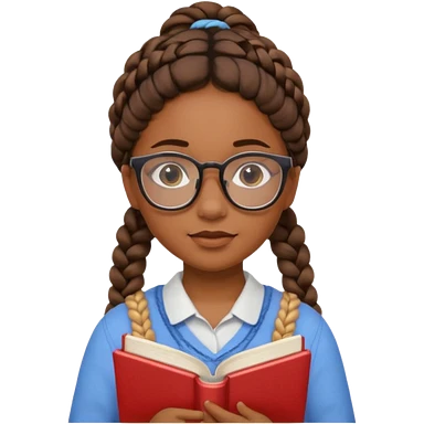 A student, girl, brown skin, braid hair, wearing glasses, hold book in front of their chest emoji