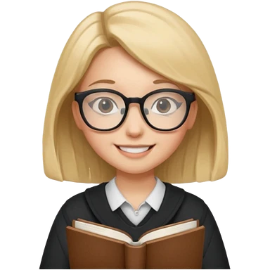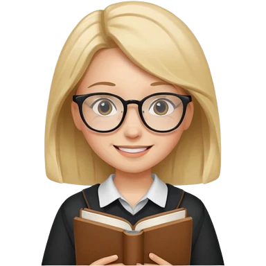 A student, girl, wearing glasses, hold book in front of their chest emoji
