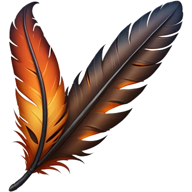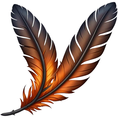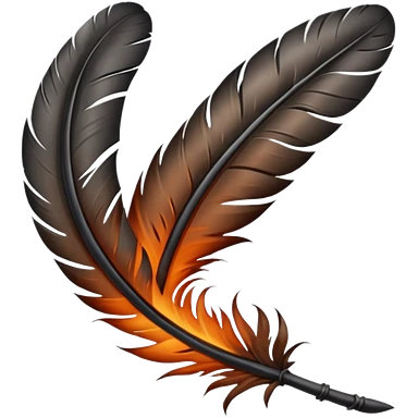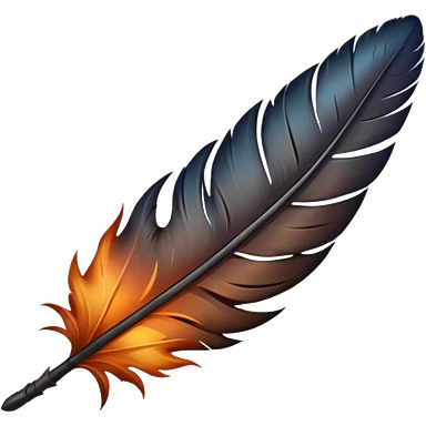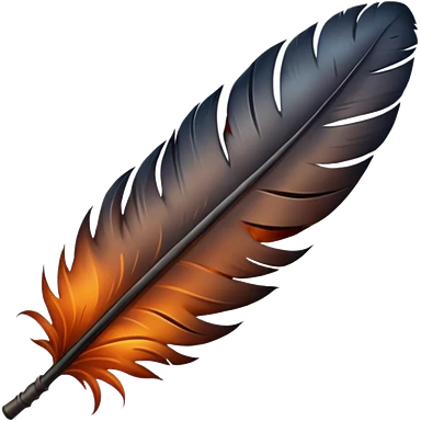 iOS emoji, dark fantasy feather, burned edges, ember glow, soft shadow, minimal emoji