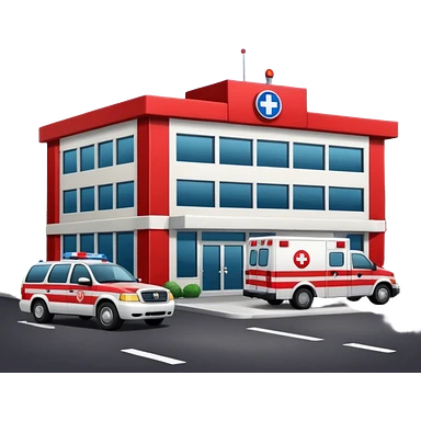 Emergency Medical Services department building with Emergency Medical Services car near emoji