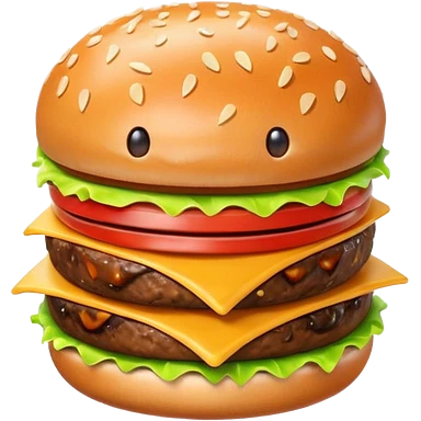 Create an image of a burger face with eyes and mouth pooping up in blue background emoji