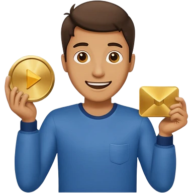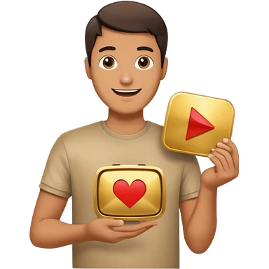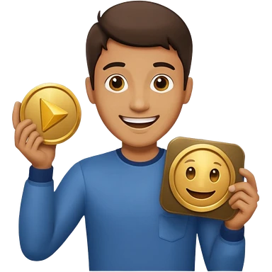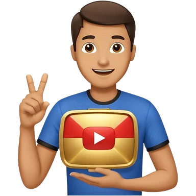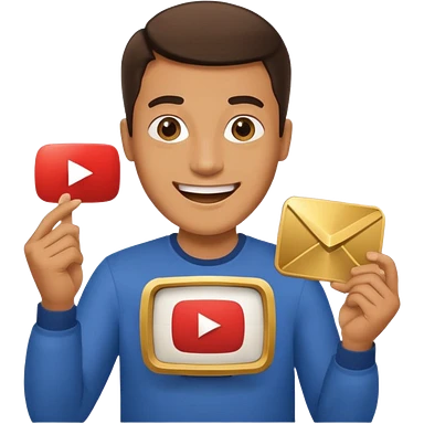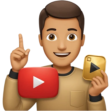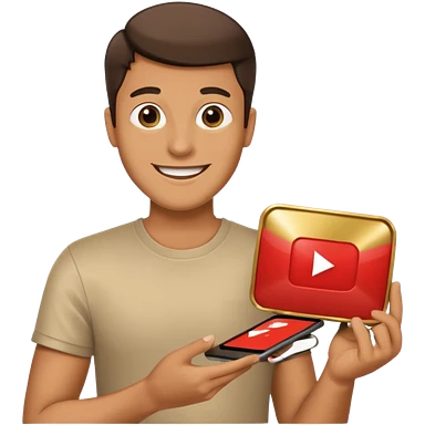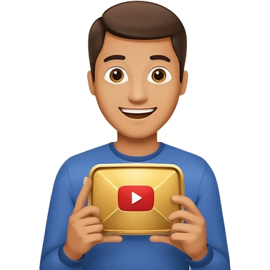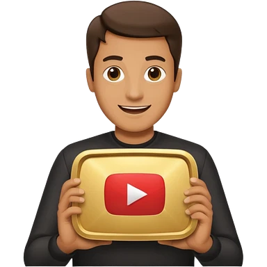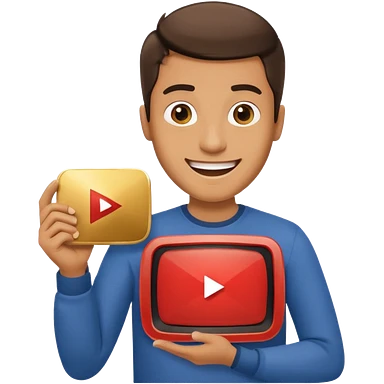 a man holding the YouTube logo, apple style emoji, with a slight smile emoji