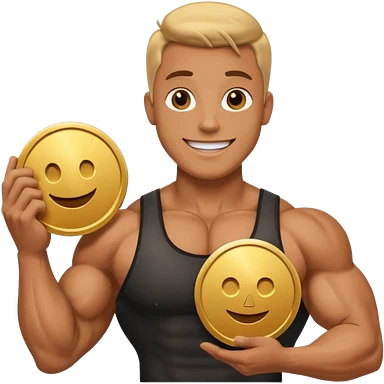 a happy bodybuilder flexing youtube golden play button emoji