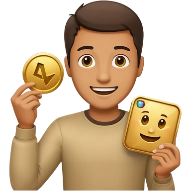 a man holding the YouTube logo, apple style emoji emoji
