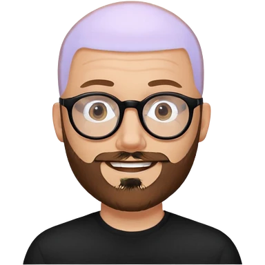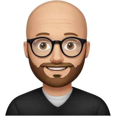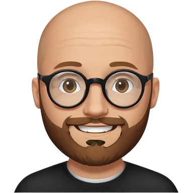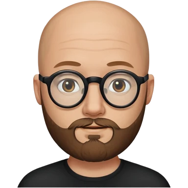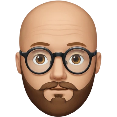 emoji 32-year-old white man, bald with a brown beard, wearing round black glasses emoji