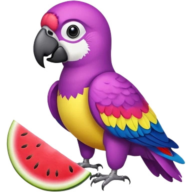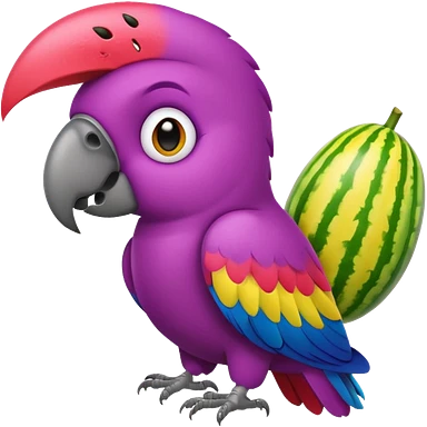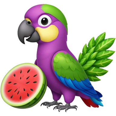 emoji de papagayo morado, sandia y amarillo emoji
