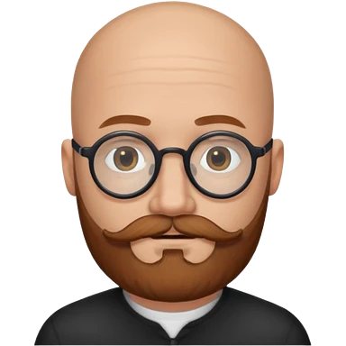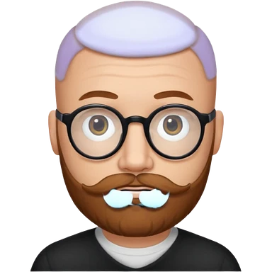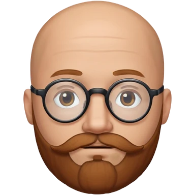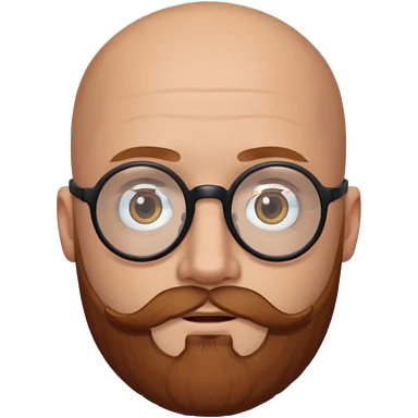 emoji 32-year-old white man, bald with a chestnut beard and mustache, small head with round black glasses. emoji