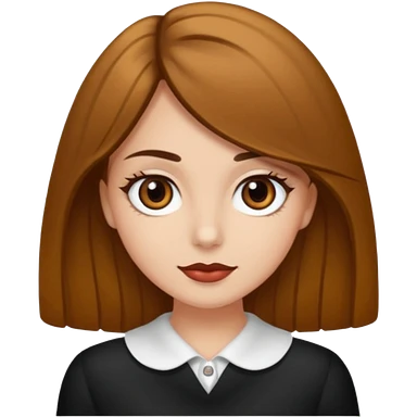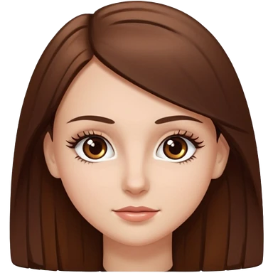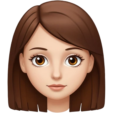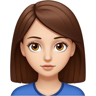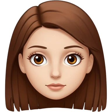 Emoji de chica blanca con cabello castaño lacio y ojos cafés con pestañas bonitas emoji