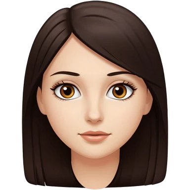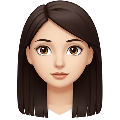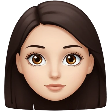 Emoji de chica blanca con cabello castaño oscuro lacio y ojos cafés con pestañas bonitas emoji
