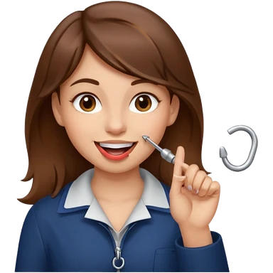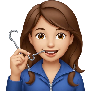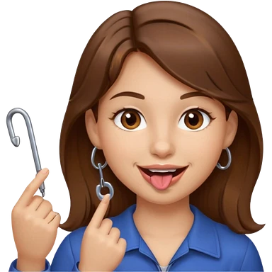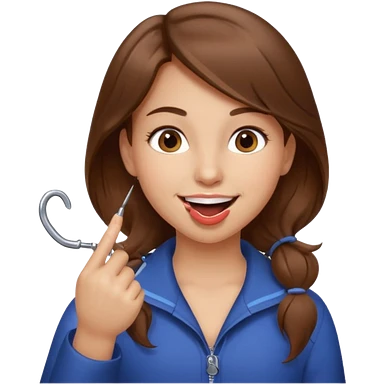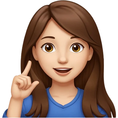 Emoji Fille cheveux long et brun yeux brun et que elle mette un doigt dans sa bouche qui forme un crochet et que elle fait un sourire emoji
