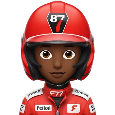 Emoji wearing red f1 helmet saying 8 7 emoji