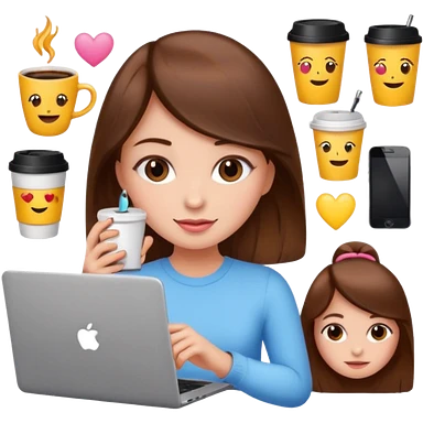 emojis de objetos girlie, cafe, uñas, celular, laptop, version girlie castaña emoji