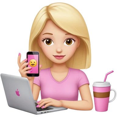 emojis de objetos girlie, cafe, uñas, celular, laptop, version girlie rubia emoji