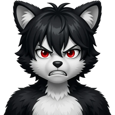 Emo boy with side black fringe with a buff black alpha furry suit on and red eyes angry emoji