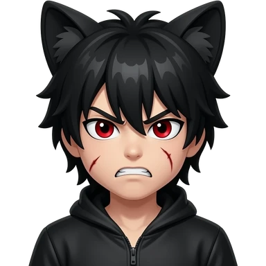 Emo boy with side black fringe with a buff black alpha furry suit on and red eyes angry with scar emoji