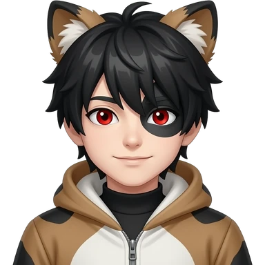 Emo boy with side black fringe with an alpha fur suit on and red eyes emoji