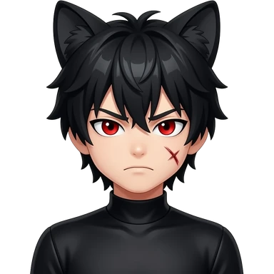 Emo boy with side black fringe with a full buff black alpha furry suit on and red eyes angry with scar emoji