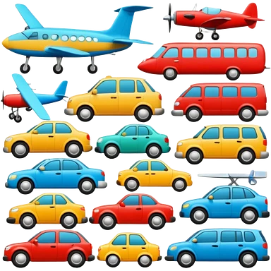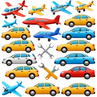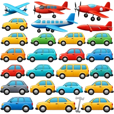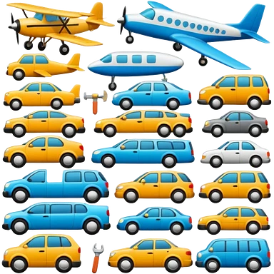 Emoji puzzle using objects or vehicles only. Example: cars, bicycles, planes, tools. One emoji slightly rotated or different shade. Very subtle difference. Modern flat design. emoji