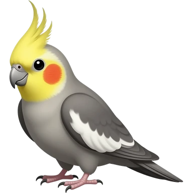 Calopsita com cabeça amarela, corpo cinza, topete, cauda longa e bochechas vermelhas emoji