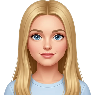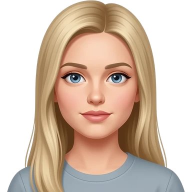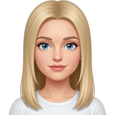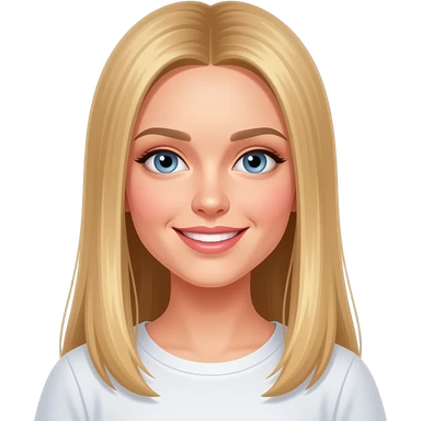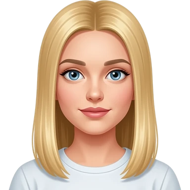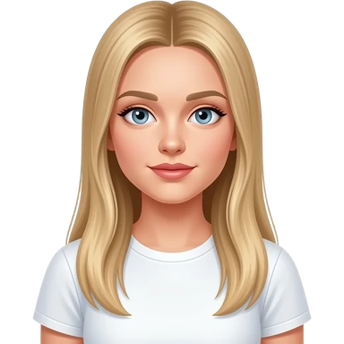 fai emoji come soggetto una bella ragazza russa bionda capelli lisci lunghi e occhi chiari, con maglietta bianca con espressione neutra emoji