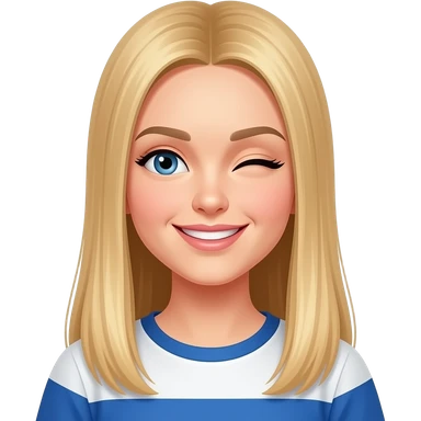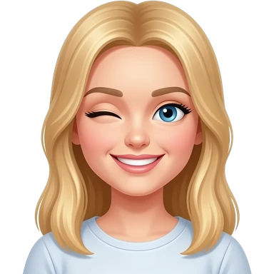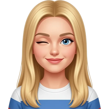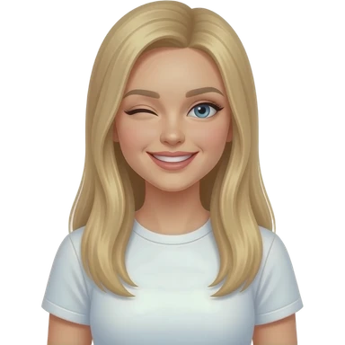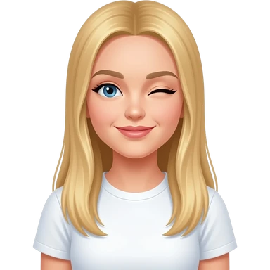 fai emoji come soggetto una bella ragazza russa bionda capelli lisci lunghi e occhi chiari, con maglietta bianca e ammiccando facendo l'occhiolino emoji