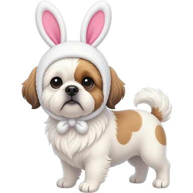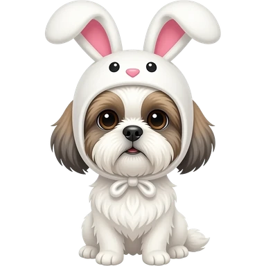 White Shih Tzu, faint brown/gray ears, with a bunny hat emoji