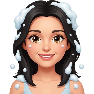 black hair girl washing hair with shampoo bubble emoji