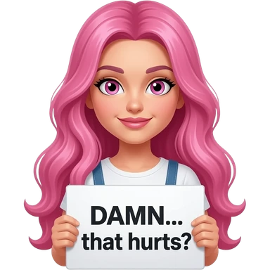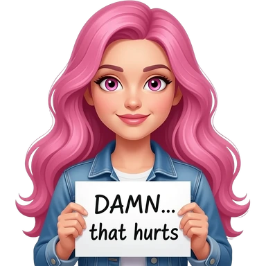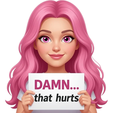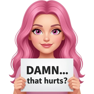 sexy girl with long pink hair and pink eyes holding DAMN... that hurts sign emoji
