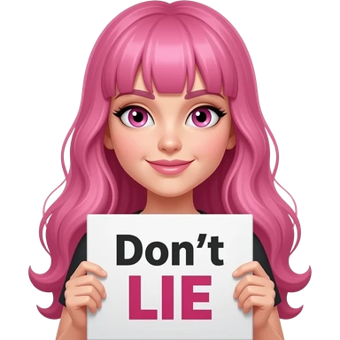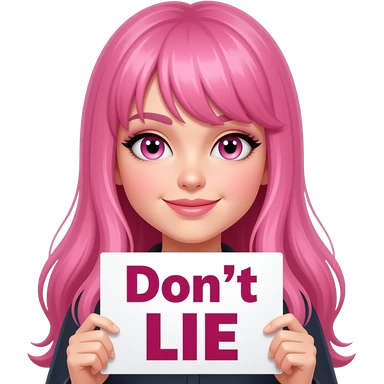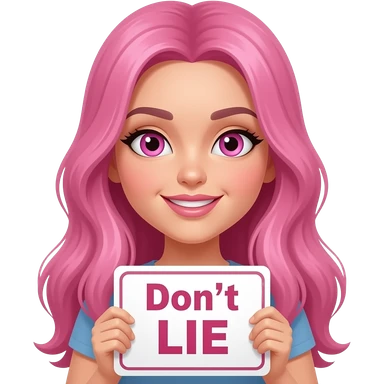 sexy girl with long pink hair and pink eyes holding Don't LIE sign emoji