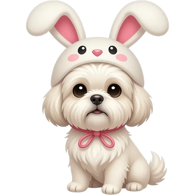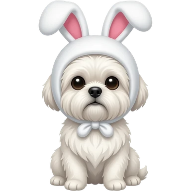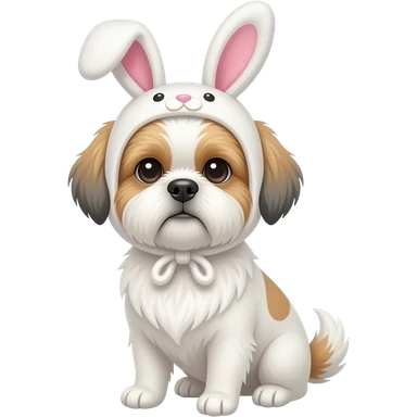 White Shih Tzu with a bunny hat emoji
