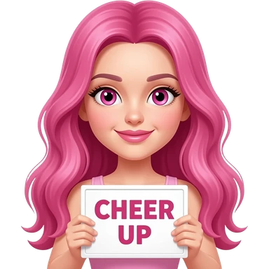 sexy girl with long pink hair and pink eyes holding CHEER UP sign emoji