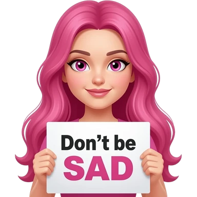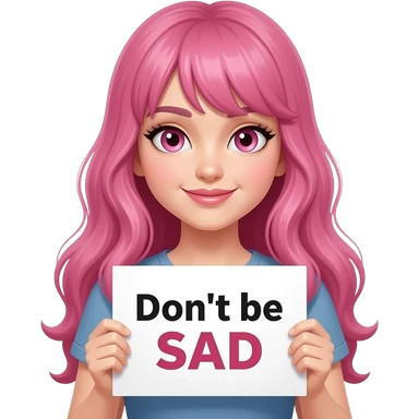 sexy girl with long pink hair and pink eyes holding Don't be SAD sign emoji