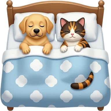 A golden Labrador and a tabby cat (dark brown/black, orange, and white fur) sleep together emoji