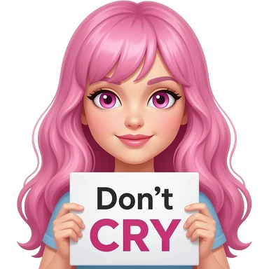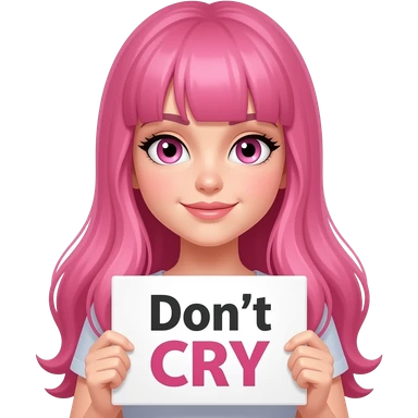 sexy girl with long pink hair and pink eyes holding Don't CRY sign emoji